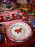 Make a statement at every meal with the Eleanor Bowmer Bow Dinner Plate. Adorned with a stunning, hand-illustrated red bow and accented by a blue and pink border, this plate brings timeless elegance to your table.